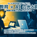 2022-09-18 / 最終更新日時 : 2022-09-22 KobayashiShinsuke 未分類 第五回Ed-AI教育データWG(WG3)の開催について テーマ:「教育現場における教育データの利活用とその課題」 平素より、Ed-AI研究会の活動にご助力をいただき厚く御礼を申し上げます。下記のとおり、第五回Ed-AI教育データWG(WG3)を開催いたします。ぜひ、ご参加いた […]